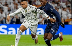 夜幕低垂,伯纳乌球场上空回荡着截然不同的...